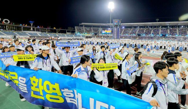 °³È¸½ÄÀå¿¡´Â 1¸¸ 8,000¿© ´ë±Ô¸ð ÀοøÀÌ Âü¿©ÇØ ¿ª´ë±Þ ÈïÇàÀ» ÀÌ·ð´Ù. Àü³²µµ¿Í ¼Ò¹æ, °æÂû, ÀÚ¿øºÀ»çÀÚ µîÀÌ Çù·ÂÇØ °³È¸½Ä Àü¡¤Áß¡¤ÈķΠöÀúÇÑ ÀÔ¡¤ÅðÀå °ü¸®¿Í Áú¼À¯Áö¿¡ ¸¸ÀüÀ» ±âÇØ ´Ü ÇÑ °ÇÀÇ ¾ÈÀü»ç°íµµ ¹ß»ýÇÏÁö ¾Ê¾Æ ¾ÈÀü°ü¸®¿¡ ÇÕ°ÝÁ¡À» ¹Þ¾Ò´Ù.