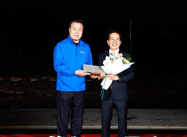 | ±¸º¹±Ô ȼø±º¼ö(ÁÂ)°¡ ȼøÃµ ²É°±æ Á¶¼º »ç¾÷ ´ÜÀåÀ» ¸Ã¾Æ Á÷Á¢ »ç¾÷À» ÁöÈÖÇÑ ¹Úö¿ø Àü ºÎ±º¼ö(¿ì)¿¡ °¨»çÆÐ¸¦ Àü´ÞÇÏ°í ±â³ä ÃÔ¿µÀ» Çϰí ÀÖ´Ù. |