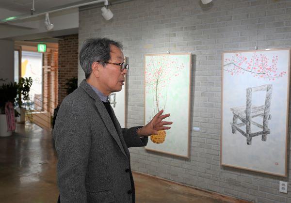 °ü¼±Àç °¶·¯¸®¿¡¼ °³ÃÖµÈ °³ÀÎÀü <µ¹¾Æ¡¤º½>. Àü½ÃµÈ ÀÛǰ <¸¸¿¬»çÀÇ ¼³°æ> ¾Õ¿¡¼ ¿ô°í ÀÖ´Â ¸ñ¿î ¿À°ß±Ô ȹé.