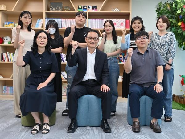 | ¾ç±Ô½Â ¼¾ÅÍÀå(¾ÕÁÙ Áß¾Ó)°ú û¼Ò³â»ó´ãº¹Áö¼¾ÅÍ Á÷¿øµé. |