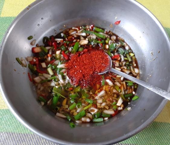 3. °£Àå, ¹°, ¸À¼ú, µé±â¸§, Âü±â¸§À» ¼¯Àº µÚ 2¹øÀÇ ´ÙÁø ä¼ÒµéÀ» ³Ö¾î ¼¯´Â´Ù.