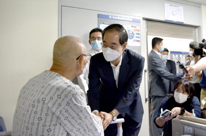 ȼøÀü³²´ëº´¿øÀº 9¿ù 13ÀÏ ÇÑ´ö¼ö ±¹¹«ÃѸ®°¡ º´¿øÀ» ã¾Æ ÀÇ·áÁø°ú ȯÀÚ¸¦ °Ý·ÁÇÏ°í ºñ»ó Áø·á ¹× Ãß¼® ¿¬ÈÞ ´ëÀÀü°è¸¦ Á¡°ËÇÏ´Â °£´ãȸ¸¦ °¡Á³´Ù°í ¹àÇû´Ù.