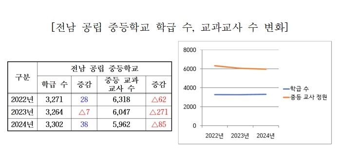 ½ÇÁ¦·Î, Àü³²ÀÇ ÁßÇб³ 3ÇÐ±Þ Çб³¿¡ ¹èÁ¤µÇ´Â ±³°ú±³»ç ¼ö´Â 2022³â 8¸í¿¡¼, 2025³â¿¡´Â 6¸íÀ¸·Î ÁÙ¾ú´Ù. ±¹°¡±³À°Ã¥ÀÓÁ¦, °í±³ÇÐÁ¡Á¦ µî Çб³ÇöÀå¿¡ ¿ä±¸µÇ´Â ¿ªÇÒÀº ´õ¿í Áß¿äÇØÁö°í ÀÖÀ¸³ª, ±³»ç´Â ¸Å³â ÁÙ°í ÀÖ´Â ¸ð¼øÀû »óȲ¿¡ Á÷¸éÇÑ °ÍÀÌ´Ù. ±âÃÊÇзº¸Àå, Ư»ö ±³À°È°µ¿, Çлý»ýȰ±³À° µî ±³À°°úÁ¤ ¿î¿µ¿¡ ¾î·Á¿òÀÌ ¿¹»óµÇ´Â ÀÌÀ¯´Ù.