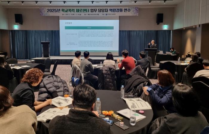 Àü¶ó³²µµ±³À°Ã»(±³À°°¨ ±è´ëÁß)ÀÌ 2¿ù 13ÀϺÎÅÍ 14ÀϱîÁö ÇØ³² ¿À½Ã¾Æ³ë¿¡¼ Çб³Æø·Â Á¦·Î¼¾ÅÍ ¾÷¹« ´ã´çÀÚµéÀÇ Àü¹®¼ºÀ» °ÈÇϰí, Çб³Æø·Â ¿¹¹æ ¹× »ç¾È ó¸®ÀÇ È¿À² ³ôÀ̱â À§ÇØ ¡®Çб³Æø·Â ¾÷¹« ´ã´çÀÚ ¿ª·®°È ¿¬¼ö¡¯¸¦ ½Ç½ÃÇß´Ù.
