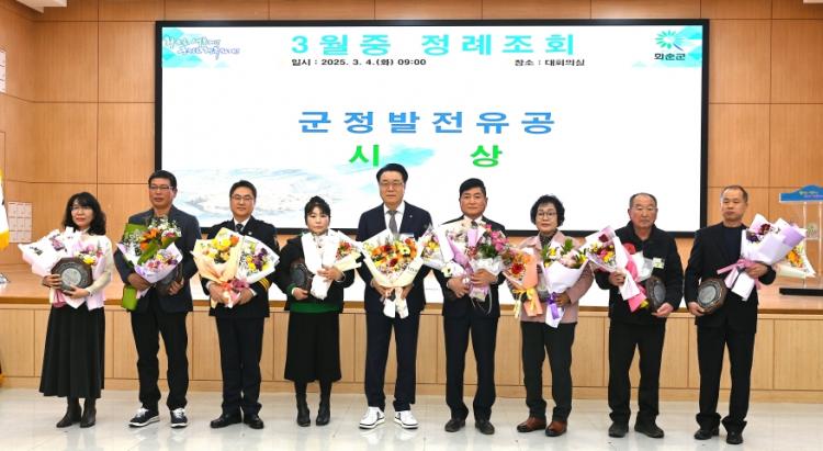 ÀÌ¾î¼ ÁøÇàµÈ ±ºÁ¤¹ßÀüÀ¯°øÀÚ Ç¥Ã¢ ¼ö¿©½Ä¿¡¼´Â Ãֹ̰æ ȼø±º°¡Á·¼¾ÅÍ ¹®È¡¤Æ¯¼ºÈ»ç¾÷ÆÀÀå, È«µÎ¿ Ãá¿ì¿µ³óÁ¶ÇÕ¹ýÀÎ ´ëÇ¥, ±è±â°© µµ°îÆÄÃâ¼ÒÀå, °øÁ¤¼÷ µ¿º¹¸é À¯Ãµ¸® ºÎ³àȸÀå, ÀÓ¿ÕÇö ȼøÀ¾ ¸¸¿¬2¸® ÀÌÀå, ÀÓÁ¡·Ê Ãá¾ç¸é »ê°£¸® ÀÌÀå, ¿°±Ô¹é ûdz¸é ÇÑÁö2¸® ÀÌÀå, ±èµ¿È£ ¹é¾Æ¸é ±æ¼º¸® ÀÌÀåÀÌ ±ºÁ¤¹ßÀü¿¡ ±â¿©ÇÑ °ø·Î¸¦ ÀÎÁ¤¹Þ¾Æ ǥâÆÐ¸¦ ¼ö»óÇß´Ù.