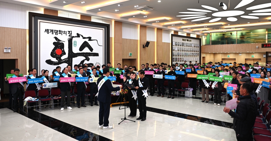Á¤·ÊÁ¶È¸ ÁøÇà¿¡ ¾Õ¼ 2025³â ȼø±º û·Å ½Çõ °áÀÇ´ëȸ¸¦ ½Ç½ÃÇß´Ù. ±è½Â¿À ±âȹ°¨»ç½ÇÀå°ú Çã¼±½É »çȸº¹Áö°úÀåÀÌ È¼ø±º Á÷¿ø ´ëÇ¥·Î û·Å °áÀǹ®À» ³¶µ¶ÇßÀ¸¸ç, ¸ðµç Âü¼®ÀÚ°¡ ½½·Î°Ç ¹× ¾î±ú¶ì¸¦ Âø¿ëÇϰí û·ÅÇÑ °øÁ÷»çȸ ±¸ÇöÀ» À§ÇÑ ÀÇÁö¸¦ ´ÙÁ³´Ù.