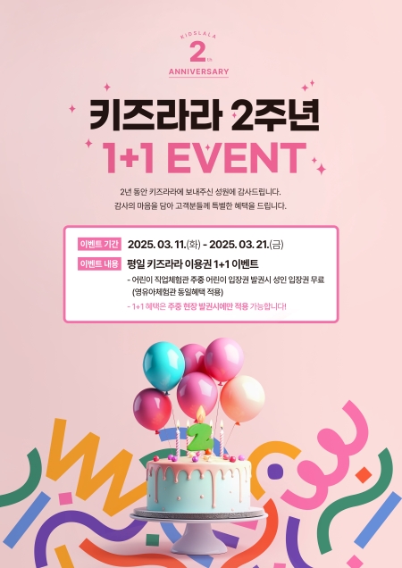 ŰÁî¶ó¶ó´Â ¿À´Â 11ÀϺÎÅÍ 2ÁÖ°£ ÆòÀÏ ÇÑÁ¤ ¾î¸°ÀÌ ÀÔÀå±Ç 1¸Å ±¸¸Å½Ã ¼ºÀÎ 1¸í ÀÔÀå·á¸¦ ¹«·á·Î Á¦°øÇϴ¡®1+1¡¯À̺¥Æ®¸¦ ÁøÇàÇÑ´Ù. °°Àº ±â°£ 9¼¼±îÁö ÀÌ¿ë °¡´ÉÇÑ ¿µÀ¯¾ÆÃ¼Çè°ü(Àª¸®ÄÚŰ ŰÁîÄ«Æä)µµ ÇöÀå ¹ß±ÇÇÏ´Â °í°´¿¡ ÇÑÇØ ¾î¸°ÀÌ ÀÔÀå±Ç ±¸¸Å½Ã ¼ºÀÎÀº ¹«·á·Î ÀÔÀåÇÒ ¼ö ÀÖ´Ù.
