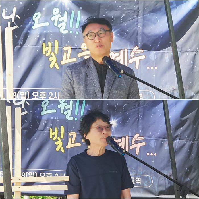5¡¤18 ±¤ÁÖ¹ÎÁÖȿ 45ÁÖ±â ÇöÀ忬ÇÕ ÁÖÀÏ¿¹¹è¿¡¼ ±èÇÑÁß ¸ñ»ç(À§)¿Í ¹®Èñ¼± ¾¾(¾Æ·¡)°¡ ´ç½ÃÀÇ °æÇèÀ» Áõ¾ðÇß´Ù.