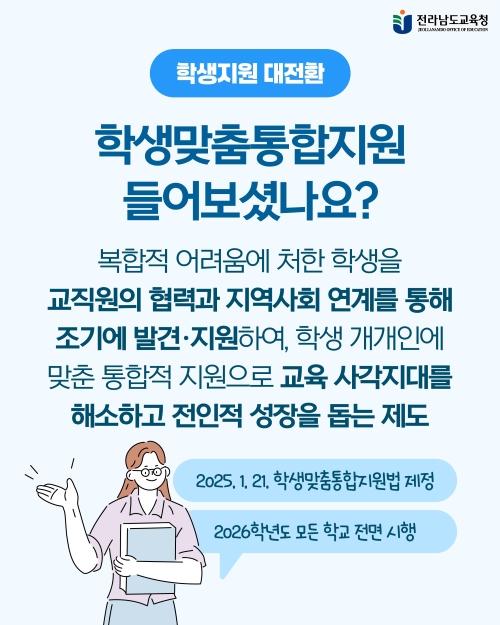 ÇÑÆí, Àü³²±³À°Ã»Àº Çлý¸ÂÃãÅëÇÕÁö¿øÀ» ÅëÇØ À§±â »óȲ¿¡ ³õÀÎ ÇлýµéÀ» Á¶±â¿¡ ¹ß±¼Çϰí Çлý Áß½ÉÀÇ ¸ÂÃãÇü ÅëÇÕÁö¿ø ¼ºñ½º¸¦ Á¦°øÇÏ´Â µî Áö¼Ó°¡´ÉÇÑ Çлý Áö¿ø ü°è¸¦ °¡µ¿Çϰí ÀÖ´Ù.