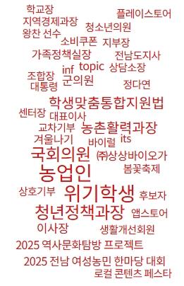 ¿¬°ü¾î ºÐ¼®À» º¸¿©ÁÖ´Â ¸·´ë±×·¡ÇÁ¿¡¼ °¡ÁßÄ¡·Î º¸³ª ±â»ç °Ç¼ö·Î º¸¾Æ »óÀ§¸¦ Â÷ÁöÇÑ ¿¬°ü¾î´Â ¾÷¹«Çù¾à, Àü³² µîÀÌ´Ù. ±× ¿¬°ü¾îÀÇ °¡ÁßÄ¡´Â °¢°¢ 7.67, 6.40À̰í, ÃâÇöºóµµ´Â °¢°¢ 17ȸ, 83ȸÀÌ´Ù. ¿¬°ü¾î ºÐ¼® °á°ú¿Í »ó´çÈ÷ ºÎÇÕÇÏ´Â ±â»çÀÇ Á¦¸ñÀº ¡°È¼ø±º, 'Çлý ¸ÂÃã ÅëÇÕÁö¿ø' ¾÷¹«Çù¾à ü°á¡±(³²µµÀϺ¸, 2025.07.03.)ÀÌ´Ù.