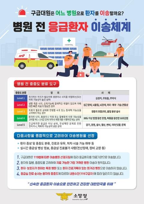 ȼø¼Ò¹æ¼(¼Àå ÃÖÀμ®)´Â ÀÀ±ÞȯÀÚ¸¦ ½Å¼ÓÇϰí Á¤È®ÇÏ°Ô ÀûÁ¤ÇÑ º´¿øÀ¸·Î À̼ÛÇÒ ¼ö ÀÖµµ·Ï º´¿ø Àü ÀÀ±ÞȯÀÚ ÁßÁõµµ ºÐ·ùü°è(pre-KTAS)¿¡ µû¶ó º´¿øÀ» ¼±Á¤Çϰí ÀÖ´Ù°í ¹àÇû´Ù.