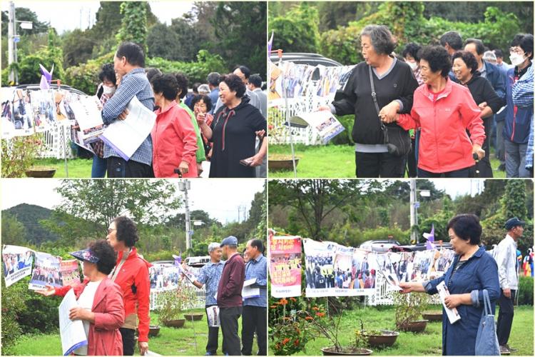 º¸°í´ëȸ ÇöÀå¿¡ Àü½ÃµÈ »çÆò´ï¹éÁöÈ´ëÃ¥À§¿øÈ¸ÀÇ ¿©Á¤À» »ìÇǰí ÀÖ´Â Áֹεé. |