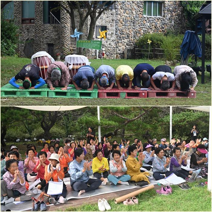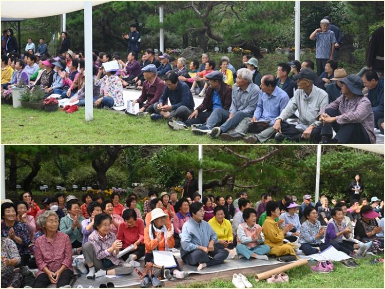 ±èÁ¤±â À§¿øÀå°ú Âü¼® ÁֹεéÀÌ Ç³¹°ÆÐ¿Í ÇÔ²² ÃàÇϸ¦ ³ª´©´Â ¸ð½À. |