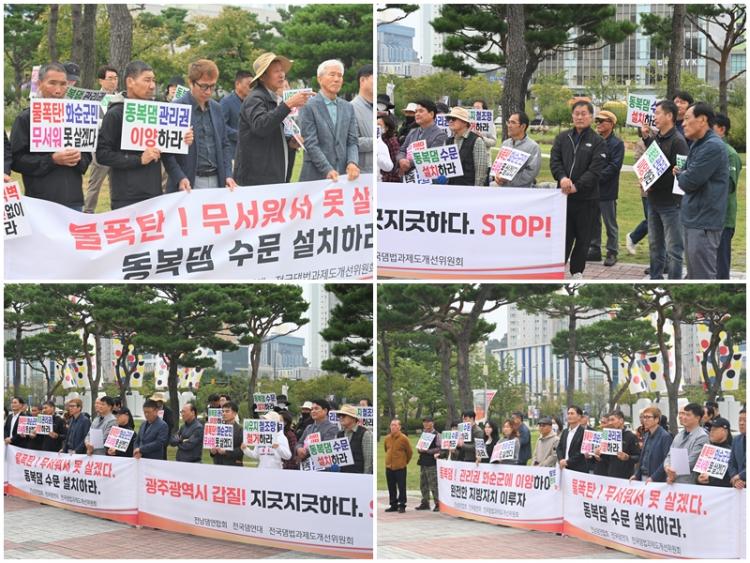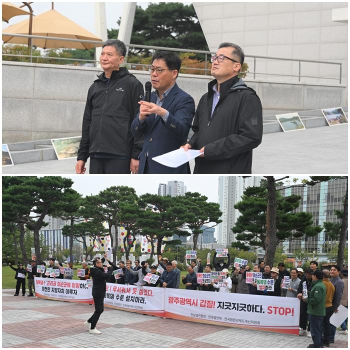 µ¿º¹´ï ¼ö¹® ¼³Ä¡ Ã˱¸¿Í ±¤ÁÖ½ÃÀÇ °©Áú ÇàÁ¤ ±Ôź µî Çö¼ö¸·À» ³»°É°í Áýȸ½ÃÀ§¸¦ Çϰí ÀÖ´Â µ¿º¹´ï ÁÖº¯Áö¿ª Áֹεé°ú ȼø±º¹Îµé |