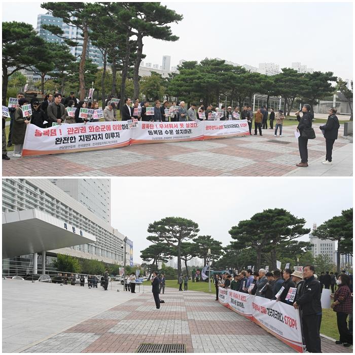 Àü³²´ïÁֹο¬ÇÕȸ(ȸÀå ±è±¤Áø)¿Í Àü±¹´ï¿¬´ë(°øµ¿ÀÇÀå ±è±¤Áø, À̱¤¿ì), µ¿º¹´ï ÁÖº¯ Áö¿ª¹Î µî 80¿© ¸íÀÌ 21ÀÏ, ±¤ÁÖ±¤¿ª½Ã¿Í ±¤ÁÖ½ÃÀÇȸ¿¡ ¹æ¹® ¡®µ¿º¹´ï ¼ö¹® ¼³Ä¡ ¹× »ó¼ö¿øº¸È£±¸¿ª °ü¸®±Ç À̾硯 Ã˱¸ ¹× ¡®µ¿º¹´ï °ü·Ã ±¤ÁÖ½ÃÀÇ ÇàÁ¤ °©Áú¡¯À» Ç×ÀÇÇÏ´Â Áýȸ¸¦ °¡Á³´Ù.