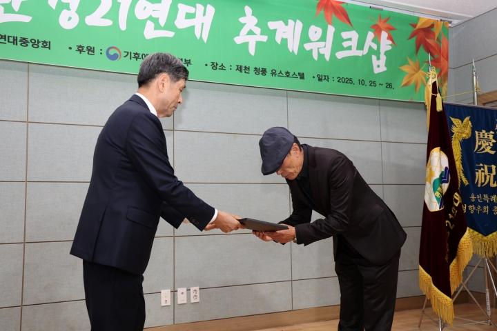 °°©¿± ȯ°æ21¿¬´ë ȼø±ºÁöºÎ °¨½Ã±¹ÀåÀÌ È¯°æ21¿¬´ë Áß¾Óȸ ¿öÅ©¼¥¿¡¼ °ø·Î ǥâÆÐ¸¦ ¼ö»óÇϰí, È«±ÇÇ¥ Áß¾ÓȸÀå°ú ±â³äÃÔ¿µÇϰí ÀÖ´Ù.
