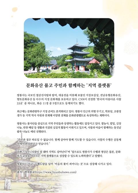 ÁõÇö½º´Ô, ½ÖºÀ»ç, ¼öÇࡤ¸í»óÀº ¹°·Ð ¹®È¡¤º¹Áö¡¤±³À° ¾Æ¿ì¸£´Â Áö¿ª Ç÷§ÆûÀ¸·Î ¼ºÀåÇÒ °Í
