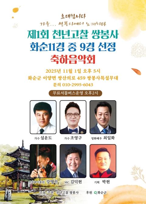 Á¦1ȸ õ³â°íÂû ½ÖºÀ»ç ȼø Á¦9°æ ¼±Á¤ ÃàÇÏ À½¾Çȸ °³ÃÖ ¾È³»