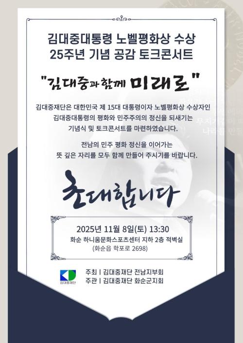 ±è´ëÁßÀç´Ü ȼø±ºÁöȸ(ÁöȸÀå À±¿µ¹Î)´Â ¿À´Â 8ÀÏ ¿ÀÈÄ 1½Ã 30ºÐ, ȼø ÇÏ´Ï¿ò ¹®È½ºÆ÷Ã÷¼¾ÅÍ Àûº®È¦¿¡¼ ¡®±è´ëÁß ´ëÅë·É ³ëº§ÆòÈ»ó ¼ö»ó 25Áֳ⠱â³ä °ø°¨ ÅäÅ©ÄܼƮ–±è´ëÁß°ú ÇÔ²² ¹Ì·¡·Î¡¯¸¦ °³ÃÖÇÑ´Ù.