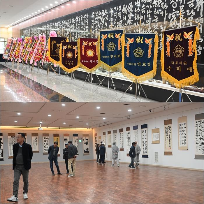 | (¾Æ·¡)Âü¼®ÀÚµéÀÌ ±è´ëÁß ´ëÅë·ÉÀÇ ¾î·ÏÀ» ¼¿¹ ÀÛǰÀ¸·Î ¾´ Àü½Ã¸¦ °ü¶÷Çϰí ÀÖ´Ù. |