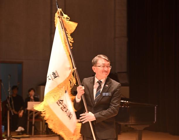 À̳¯ À±¿µ¹Î ȼø±ºÁöȸÀåÀÌ ±è´ëÁßÀç´Ü ȼø±ºÁöȸÀÇ Ãâ¹üÀ» ¼±Æ÷Çϰí, ÁöȸÀå ÀÓ¸íÀå°ú Áöȸ±â¸¦ Àü´Þ¹Þ¾Ò´Ù.