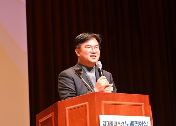 ±è´ëÁßÀç´Ü ȼø±ºÁöȸ(ÁöȸÀå À±¿µ¹Î)°¡ 8ÀÏ ÇÏ´Ï¿ò¹®È½ºÆ÷Ã÷¼¾ÅÍ Àûº®È¦¿¡¼ ±è´ëÁß ´ëÅë·É ³ëº§ÆòÈ»ó ¼ö»ó 25Áֳ⠱â³ä °ø°¨ ÅäÅ©ÄܼƮ ¡®±è´ëÁß°ú ÇÔ²² ¹Ì·¡·Î¡¯¸¦ °³ÃÖÇß´Ù.