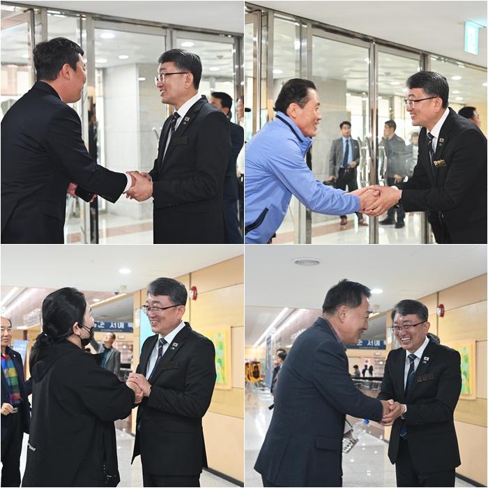 | À±¿µ¹Î ±è´ëÁßÀç´Ü ȼøÁöȸÀåÀÌ Âü¼®ÀÚµéÀ» ȯ¿µÇϰí ÀÖ´Ù. |