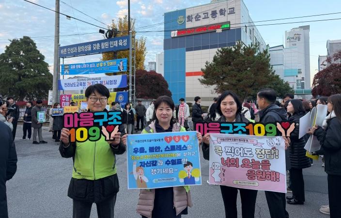 ¼öÇè»ýµéÀº ÀԽÿ¡ ´ëÇÑ ºÒ¾È, ¿ì¿ï, ½ºÆ®·¹½º µî Á¤½ÅÀû À§±â¿¡ ³ëÃâµÉ °¡´É¼ºÀÌ ³ô´Ù. ÀÌ¿¡ ¼¾ÅÍ´Â Á¤½Å°Ç° ¹®Á¦ ¿¹¹æ ¹× ´ëó¿¡ ´ëÇÑ Á¤º¸¸¦ Á¦°øÇϰí, ½É¸®Àû ¾ÈÁ¤°ú ±äÀå ¿Ïȸ¦ µ½±â À§ÇØ À̹ø Çà»ç¸¦ ÁغñÇß´Ù. ½ÃÇèÀå ¾Õ¿¡¼ ¼öÇè»ýµé¿¡°Ô ¼¾ÅÍ ¾È³»°¡ ºÎÂøµÈ °£½ÄÀ» Àü´ÞÇϸç ÀÀ¿ø°ú °Ý·ÁÀÇ ¸Þ½ÃÁö¸¦ ÀüÇß´Ù.