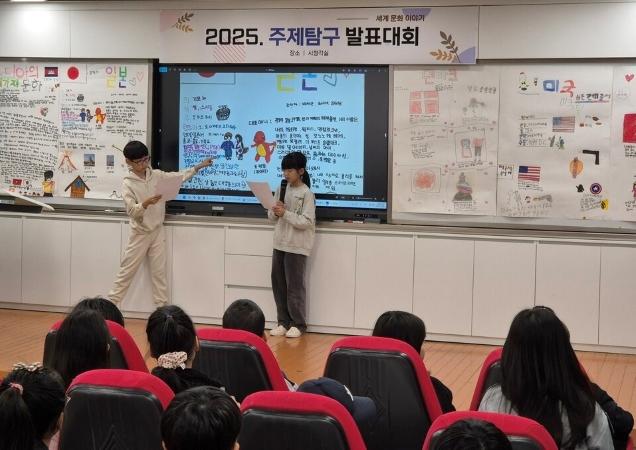 ȼø¸¸¿¬ÃʵîÇб³(±³Àå ¿©¹Î±¸)°¡ ´Ù¹®È ¿¬±¸Çб³ ¿î¿µÀÇ ÀÏȯÀ¸·Î ¡®ÁÖÁ¦Å½±¸ ¹ßÇ¥´ëȸ¡¯¸¦ ¿°í, ¼¼°è ¹®È¸¦ ¹è¿ì°í Á¸ÁßÇÏ´Â ½Ã°£À» ¸¶·ÃÇß´Ù.