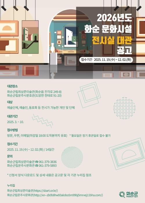 ȼø±º(±¸º¹±Ô ±º¼ö)Àº Áö¿ª ¹®È¿¹¼ú ¹ßÀü ÃËÁøÀ» À§ÇØ ¿ª·® ÀÖ´Â °³ÀÎ ¶Ç´Â ´Üü¿¡ Àü½Ã °ø°£À» Á¦°øÇÏ´Â ¡®2026³âµµ ȼø ¹®È½Ã¼³ Àü½Ã½Ç ´ë°üÀ» ½Åû¡¤Á¢¼öÇÑ´Ù°í 19ÀÏ ¹àÇû´Ù.