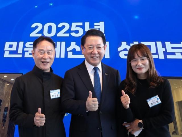 Çѱ¤¿ë, ±èÀºÈñ ¹Î¿ø¸Þ½ÅÀú°¡ Áö³ 26ÀÏ ¼øÃµ½Ã ¾Æ¸ð¸£¿þµùÄÁº¥¼ÇȦ¿¡¼ °³ÃÖµÈ 2025³âµµ Àü¶ó³²µµ ¹Î¿ø¸Þ½ÅÀú ¼º°úº¸°í´ëȸ¿¡¼ ¿ì¼ö ¸Þ½ÅÀú·Î ¼±Á¤µÅ Àü¶ó³²µµÁö»ç ǥâÀ» ¼ö»óÇß´Ù.