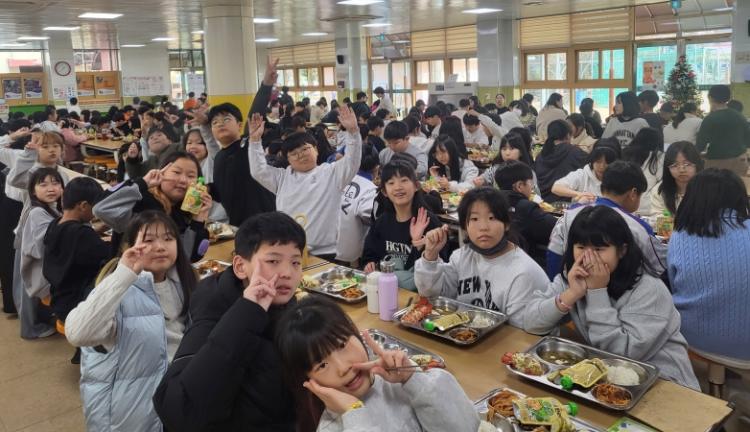 ȼøÃʵîÇб³(±³Àå Á¶¿µ·¡)´Â 12¿ù ¿¬¸»À» ¸Â¾Æ ÇлýµéÀ» ÀÀ¿øÇϱâ À§ÇØ ±Þ½Ä ¸Þ´º·Î ¶ø½ºÅÍ¿Í Àå¾î, ÇÑ¿ì µî Æ¯º°½ÄÀ» Á¦°øÇß´Ù. À̹ø ±Þ½ÄÀº ¼ºÀå±â ÇлýµéÀÇ ±âÈ£µµ°¡ ³ôÀº ¸Þ´º Á¦°øÀ» ÅëÇØ ÃæºÐÇÑ ¿µ¾ç ¼·Ã븦 µ½°í, ÇÑ ÇØ µ¿¾È ¼ö°íÇÑ Çлý°ú À¯Ä¡¿ø ¿ø¾Æ, ±³Á÷¿ø ¸ðµÎ¿¡°Ô °¨»çÀÇ ¸¶À½À» ÀüÇϰíÀÚ ¸¶·ÃµÆ´Ù.