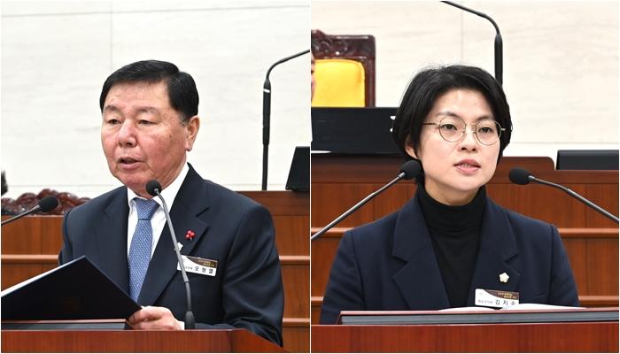 | ¿ÀÇü¿ ÀÇÀå(¿ÞÂÊ), ±èÁö¼÷ ÀÇ¿ø(¿À¸¥ÂÊ)ÀÌ ´ëÇ¥¹ßÀÇÇÑ °ÇÀǹ®À» ³¶µ¶Çϰí ÀÖ´Ù. |