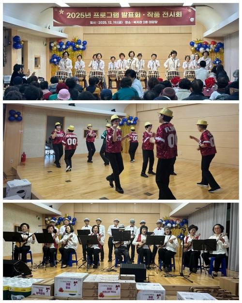 ÇÁ·Î±×·¥ ¹ßǥȸ¿¡¼­´Â Ãë¹Ì¿©°¡ ¹× °Ç°­±³½Ç µî 14°³ ÇÁ·Î±×·¥ ¼ö°­»ýµé°ú µ¿»ê°æ·Î´ç ¾î¸£½ÅµéÀÌ ¹«´ë¿¡ ¿Ã¶ó ±×µ¿¾È °¥°í´ÛÀº ½Ç·ÂÀ» ¼±º¸À̸ç Å« ¹Ú¼ö¸¦ ¹Þ¾Ò´Ù. ÃàÇϰø¿¬À¸·Î´Â Àü³²¹®È­Àç´Ü¿¡¼­ â±Ø, ¹ÂÁöÄð¥¶ó¼î, ½Ç³»¾Ç¿¬ÁÖ ¹«´ë·Î Çà»ç ºÐÀ§±â¸¦ ´õ¿í dz¼ºÇÏ°Ô Çß´Ù.
