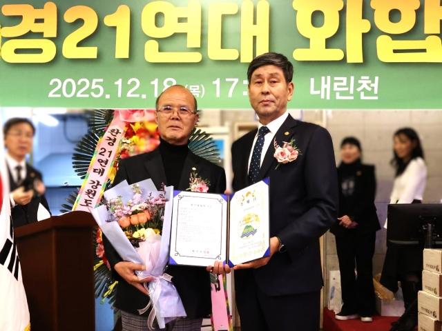 ±è»óÈ£ (»ç)ȯ°æ21¿¬´ë ȼøÁöºÎÀåÀÌ Áö³ 18ÀÏ ¿ëÀνà ¼ÒÀç ³»¸°Ãµ¿¡¼ °³ÃÖµÈ ¡®2025³â (»ç)ȯ°æ21¿¬´ë ÈÇÕÀÇ ¹ã(¼Û³âȸ)¡¯ Çà»ç¿¡¼ ±¤ÁÖÀü³²º»ºÎÀåÀ¸·Î ¹ßŹµÇ¸ç À§ÃËÀåÀ» ¼ö¿© ¹Þ¾Ò´Ù.