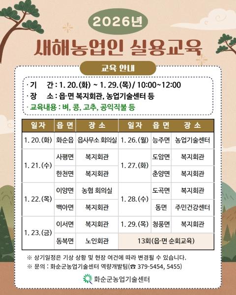 ȼø±º(±º¼ö ±¸º¹±Ô)Àº 2026³â 1¿ù 20ÀϺÎÅÍ 1¿ù 29ÀϱîÁö °ü³» ³ó¾÷ÀÎÀ» ´ë»óÀ¸·Î 2026³â »õÇØ³ó¾÷Àνǿ뱳À°À» ½Ç½ÃÇÑ´Ù°í ¹àÇû´Ù.