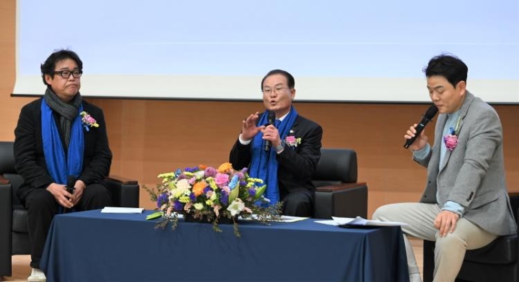 À̳¯ Çà»ç´Â Ã¥ ³»¿ëÀ» Áß½ÉÀ¸·Î °û ¼ÒÀåÀÌ °É¾î¿Â ±æ°ú ȼøÀÇ ¹Ì·¡ ±¸»óÀ» µè´Â ´ë´ã ¹× Ãà»ç Çü½ÄÀ¸·Î ÁøÇàµÆ´Ù.