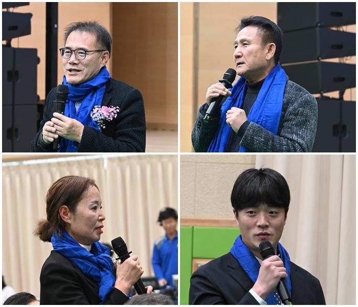 ¹ÚÂù´ë, Á¤Áø¿í, Á¤ÁØÈ£, ¹Ú±ÕÅà ±¹È¸ÀÇ¿øµµ ¿µ»ó Ãà»ç¸¦ ÅëÇØ °ûÇàÈ£ ¼ÒÀåÀÇ Ãâ°£À» ÃàÇÏÇϸç Áö¿ª ¹ßÀüÀ» ÇâÇÑ Çຸ¿¡ ÀÀ¿øÀÇ ¶æÀ» ÀüÇß´Ù. ¶ÇÇÑ ÀÌÁ¤¼± ±¤ÁÖ±¤¿ª½Ã±³À°°¨µµ ÃàÇÏ ¿µ»óÀ» º¸³» ¡°Áö¿ª°ú ÇÔ²²ÇÏ´Â ÀÇ¹Ì ÀÖ´Â Ãâ°£¡±À̶ó¸ç ÃàÇÏ ¸Þ½ÃÁö¸¦ Àü´ÞÇß´Ù.