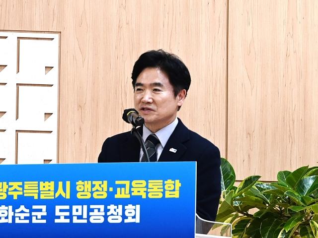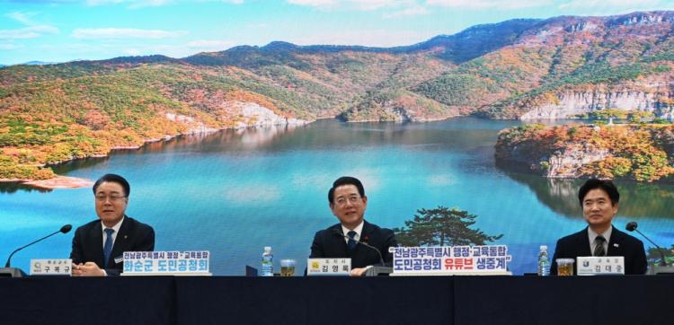 ±è´ëÁß ±³À°°¨Àº ¡°±¤ÁÖÀü³²ÀÌ ÅëÇÕÀ» ÀÌ·ç¸é ±³À°ÀÇ ÆÇ ¿ª½Ã ¹Ù²î°Ô µÈ´Ù. Àü±¹¿¡¼ ¼Ò¸ê À§±â°¡ °¡Àå ½É°¢ÇÑ Áö¿ªÀÎ ¸¸Å, ¿ì¸® Áö¿ª¿¡¼ ÅÂ¾î³ ¾ÆÀ̵éÀÌ ±³À° ¶§¹®¿¡ ¶°³ªÁö ¾Êµµ·Ï ÇÏ´Â °ÍÀ» Á¦1ÀÇ ¸ñÇ¥·Î »ï°í ´ëÀüȯÀ» ÃßÁøÇϰí ÀÖ´Ù. ½Ã¡¤µµ ÅëÇÕÀÌ ¼º°øÇÏ°í ±³À°µµ ºü¸¥ ÅëÇÕÀ» ÀÌ·èÇØ Àü³²±¤ÁÖÀÇ ´ëºÎÈï ½Ã´ë, °³Ãµ¿¡¼ ¿ë ³ª´Â ½Ã´ë°¡ »¡¸® ¿¸®±â¸¦ ¹Ù¶õ´Ù.¡±°í Çß´Ù.