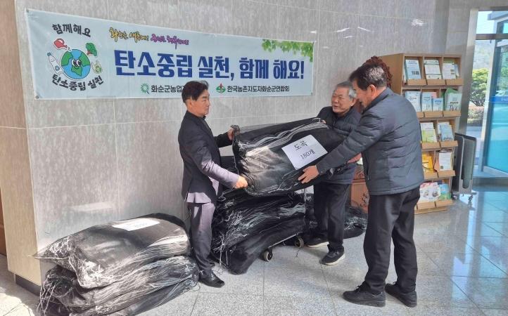 ¾Æ¿ï·¯ ±ºÀº ±ú²ýÇÑ ³óÃÌ È¯°æ Á¶¼ºÀ» À§ÇØ Æó³ó¾àº´ ¼ö°Å¸Á 1,500°³¸¦ ÇöÀå¿¡ ¹èºÎÇϰí ź¼ÒÁ߸³ ½Çõ ¹®È È®»ê¿¡ ÇÔ²²Çϱâ·Î ¶æÀ» ¸ð¾Ò´Ù.