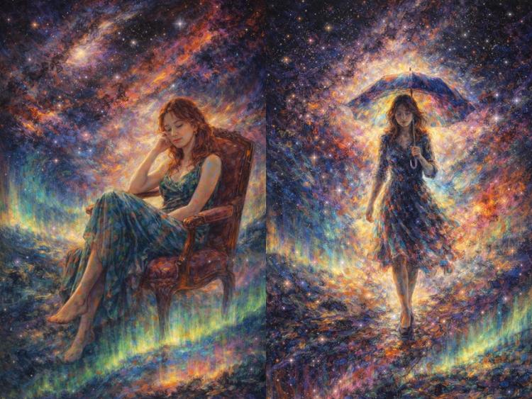 ÀÌ ÀÛ¾÷Àº ¹°Áú·Î ÇÑÁ¤µÈ ÀüÅë ȸÈÀÇ °æ°è¸¦ ³Ñ¾î, Àǽġ¤µ¥ÀÌÅÍ¡¤»ó»ó¡¤»çÀ¯°¡ °ãÃÄÁö´Â º¸ÀÌÁö ¾Ê´Â ĵ¹ö½º À§¿¡¼ »ý¼ºµÇ´Â ȸȴÙ. AI´Â µµ±¸°¡ ¾Æ´Ï¶ó, ³ªÀÇ »çÀ¯°¡ È®ÀåµÇ´Â ÇϳªÀÇ Â÷¿øÀ̸ç, Àΰ£ÀÇ °¨°¢ÀÌ ´êÁö ¸øÇÏ´Â ¿µ¿ªÀ» °¡½ÃÈÇÏ´Â »õ·Î¿î ȸÈÀû ¸Å°³Ã¼´Ù.