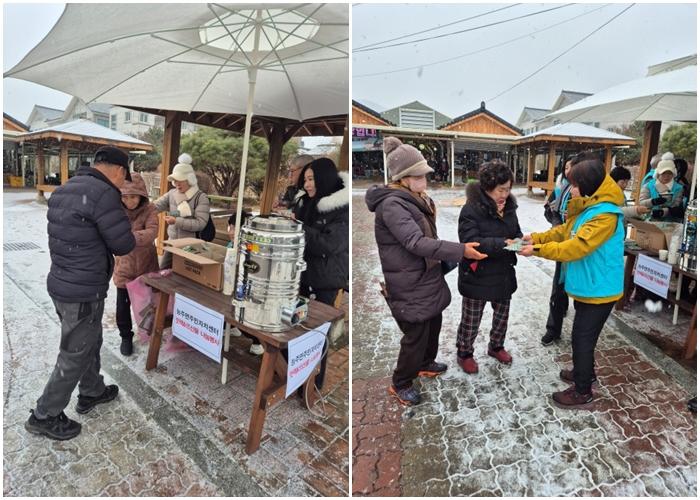 À¯¿µÈ£ À§¿øÀåÀº ¡°ÀÛÀº Á¤¼ºÀÌÁö¸¸ ¸Å¼¿î ÃßÀ§ ¼Ó¿¡¼ ÀåÀ» º¸·¯ ³ª¿À½Å ¾î¸£½Åµé²² Àá½Ã³ª¸¶ µû¶æÇÑ ±â¿îÀ» ¾òÀ¸¼ÌÀ¸¸é ÁÁ°Ú´Ù.¡±¸ç, ¡°¾ÕÀ¸·Îµµ ÁÖº¯¿¡ ¼Ò¿ÜµÈ ÀÌ¿ôÀÌ ¾ø´ÂÁö ¼¼½ÉÈ÷ »ìÇǰí, »ýȰ ¹ÐÂøÇü ³ª´® ºÀ»ç¸¦ Áö¼ÓÇØ ¿Â±â ³ÑÄ¡´Â ´ÉÁÖ¸éÀ» ¸¸µé¾î ³ª°¡°Ú´Ù.¡±°í Çß´Ù.