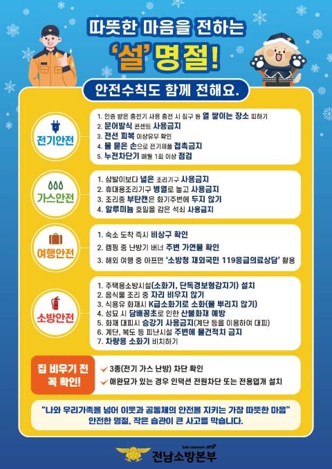 ¸íÀý ±â°£¿¡´Â À½½Ä Á¶¸®¿Í Àü±â Á¦Ç° »ç¿ë Áõ°¡ µîÀ¸·Î ÈÀç À§ÇèÀÌ Ä¿Áö°í, Àå°Å¸® À̵¿°ú ¿©ÇàÀ¸·Î ÀÎÇÑ ¾ÈÀü»ç°í À§Çèµµ ÄÑ °¢º°ÇÑ ÁÖÀǰ¡ ÇÊ¿äÇÏ´Ù.