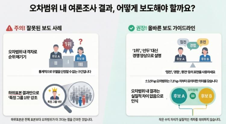 ¿©·ÐÁ¶»ç °á°ú ÁöÁöÀ² Â÷À̰¡ Ç¥º»¿ÀÂ÷ ¹üÀ§ À̳»¿¡ ÀÖ¾î ½ÇÁúÀûÀÎ °ÝÂ÷°¡ ÀÖ´Ù°í ´ÜÁ¤ÇÒ ¼ö ¾ø´Â °æ¿ì ¡®1À§ ±â·Ï¡¯, ¡®¼±µÎÂ÷Áö¡¯, ¡®¾Õ¼¹´Ù¡¯ µî ¿ì¿È¡¤¼¿ÈÇϴ ǥÇö ´ë½Å ¡®Á¢Àü¡¯, ¡®°æÇÕ¡¯, ¡®È¥Àü¡¯ µî °æÀï ¾ç»óÀ» ¼³¸íÇϴ ǥÇöÀ» »ç¿ëÇØ¾ß ÇÑ´Ù.