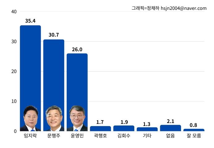 Â÷±â ȼø±º¼ö ÁöÁöµµ ÀÓÁö¶ô 35.4%, ¹®ÇàÁÖ 30.7%, À±¿µ¹Î 26.0%