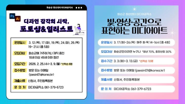 ¡®ºû¡¤¿µ»ó¡¤°ø°£À¸·Î Ç¥ÇöÇÏ´Â ¹Ìµð¾î¾ÆÆ®¡¯ °úÁ¤Àº 3¿ù 17ÀÏ ¿ÀÈÄ 2½Ã¿¡ ÁøÇàµÈ´Ù. Âü°¡ÀÚµéÀº ¿µ»ó Á¦ÀÛ ±âÃÊ¿Í ·¹À̾î Ȱ¿ë, »ö»ó¡¤ÇüÅ º¯Çü µî ±âº» ±â´ÉÀ» ¹è¿ì°í ÅÂºí¸´PC¿Í ºö ÇÁ·ÎÁ§Å͸¦ Ȱ¿ëÇÑ Åõ»ç ½Ç½ÀÀ¸·Î °ø°£ ¿¬Ãâ ¹æ½Äµµ üÇèÇÏ°Ô µÈ´Ù.
