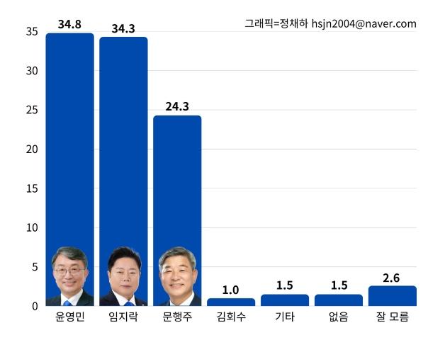 Â÷±â ȼø±º¼ö ÁöÁöµµ À±¿µ¹Î 34.8%, ÀÓÁö¶ô 34.3%, ¹®ÇàÁÖ 24.3%