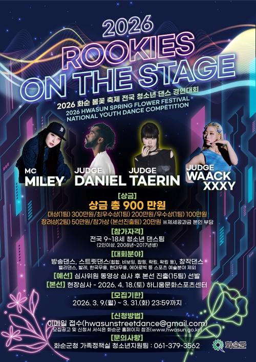 °æ¿¬ Á¾¸ñÀº ¹æ¼Û´í½º, ½ºÆ®¸®Æ®´í½º, âÀÛ´í½º Áß ÀÚÀ¯·Ó°Ô ¼±ÅÃÇÒ ¼ö ÀÖ´Ù. Á¢¼ö ±â°£Àº 2026³â 3¿ù 31ÀϱîÁöÀ̸ç, Âü°¡ ½Åû¼¿Í ´í½º µ¿¿µ»óÀ» À̸ÞÀÏ(hwasunstreetdance@gmail.com)·Î Á¦ÃâÇÏ¸é µÈ´Ù. ±âŸ ÀÚ¼¼ÇÑ »çÇ×Àº ȼø±º ȨÆäÀÌÁö °í½Ã °ø°í¶õÀ» È®ÀÎÇÏ¸é µÈ´Ù.