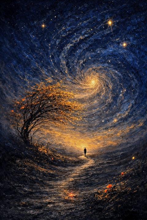 dz°æÀ» ¹¦»çÇϴ ȸȰ¡ ¾Æ´Ï¶ó Àΰ£ Á¸Àç¿Í ¿ìÁÖÀû Áú¼ »çÀÌÀÇ °ü°è¸¦ Ž»öÇϴ öÇÐÀû dz°æÀÌ´Ù. ÀÛÀº Àΰ£ÀÇ ½Ç·ç¿§°ú °Å´ëÇÑ º°ÀÇ È¸ÀüÀÌ ¸¸µé¾î³»´Â ´ëºñ´Â, ¼¼°è ¼Ó¿¡¼ Àΰ£ÀÌ Â÷ÁöÇÏ´Â ¹Ì¼¼ÇÑ À§Ä¡¿Í ±×·³¿¡µµ ºÒ±¸ÇÏ°í °è¼Ó °É¾î°¡¾ß ÇÏ´Â Á¸ÀçÀÇ Á¶°ÇÀ» °ÇÏ°Ô È¯±â½ÃŲ´Ù.