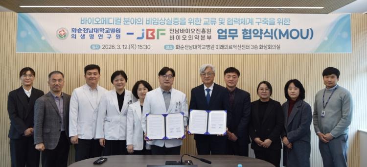 ȼøÀü³²´ëÇб³º´¿ø(º´¿øÀå À̿ϽÄ)Àº ÃÖ±Ù º´¿ø ¹Ì·¡ÀÇ·áÇõ½Å¼¾ÅÍ 3Ãþ È»óȸÀǽǿ¡¼ ÀÇ»ý¸í¿¬±¸¿ø°ú Àü³²¹ÙÀÌ¿ÀÁøÈï¿ø ¹ÙÀÌ¿ÀÀǾົºÎ°¡ ¹ÙÀÌ¿À¸ÞµðÄà ºÐ¾ß ¿¬±¸ Çù·ÂÀ» À§ÇÑ ¾÷¹«Çù¾àÀ» ü°áÇß´Ù°í 16ÀÏ ¹àÇû´Ù.